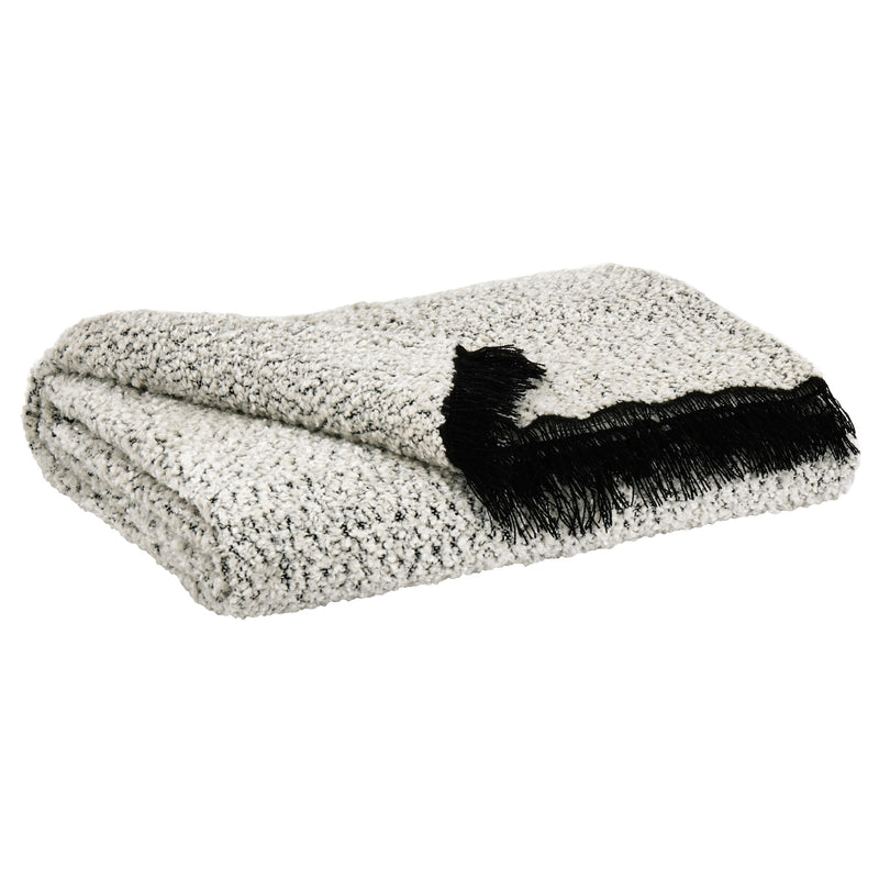Ultra-plush softness and cozy warmth make this throw nice to have around the house. Flirty black fringe and soft chenille merge a sumptuous soft feel with a richly artisan sense of style.
