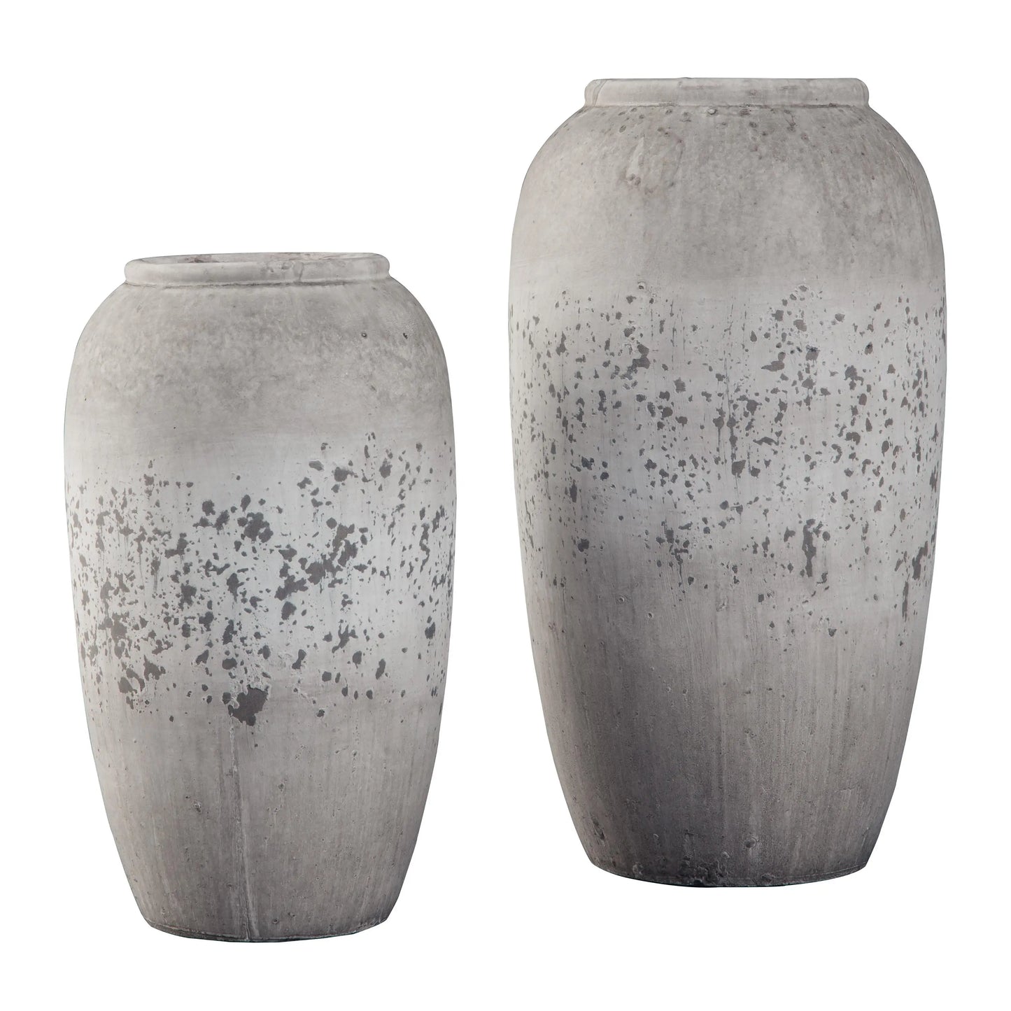 Is your home curated rather than simply decorated? Add another thoughtful piece into the mix with this 2-piece vase set. Brown and antique cream painted ceramic has a unique weatherworn finish. Add fresh florals for a vintage-inspired look.