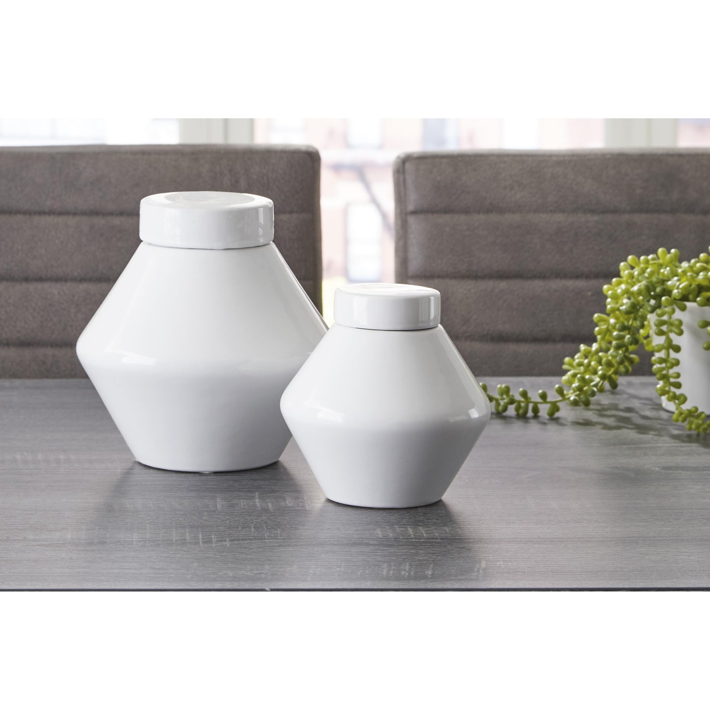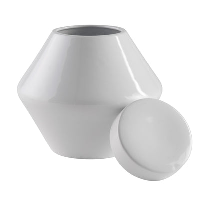 Show off your sense of curated good taste with this glazed ceramic jar with removable lid. Minimalistic and modern, this set is the embodiment of sleek style.