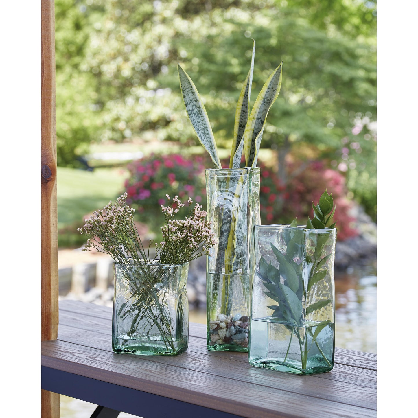 This vase, made of transparent green glass, provides a sturdy foundation for a full bouquet of your favorite long-stemmed blooms. With a fluted wide opening, the beautiful vessel provides ample room to place flowers perfectly. Or use it with flameless candles to create a romantic atmosphere outdoors. The uniqueness of this vase's design produces a gorgeous focal point for any room or event.