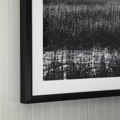 Filled with calming natural elements, this wall art has a refined look with a restful feel. It captures a landscape with rolling hills, drawing your eye to the tree standing tall in the center of the creation. Lighter tones in the clouds bring brightness to the black and white design, making for a striking addition to your modern decor.