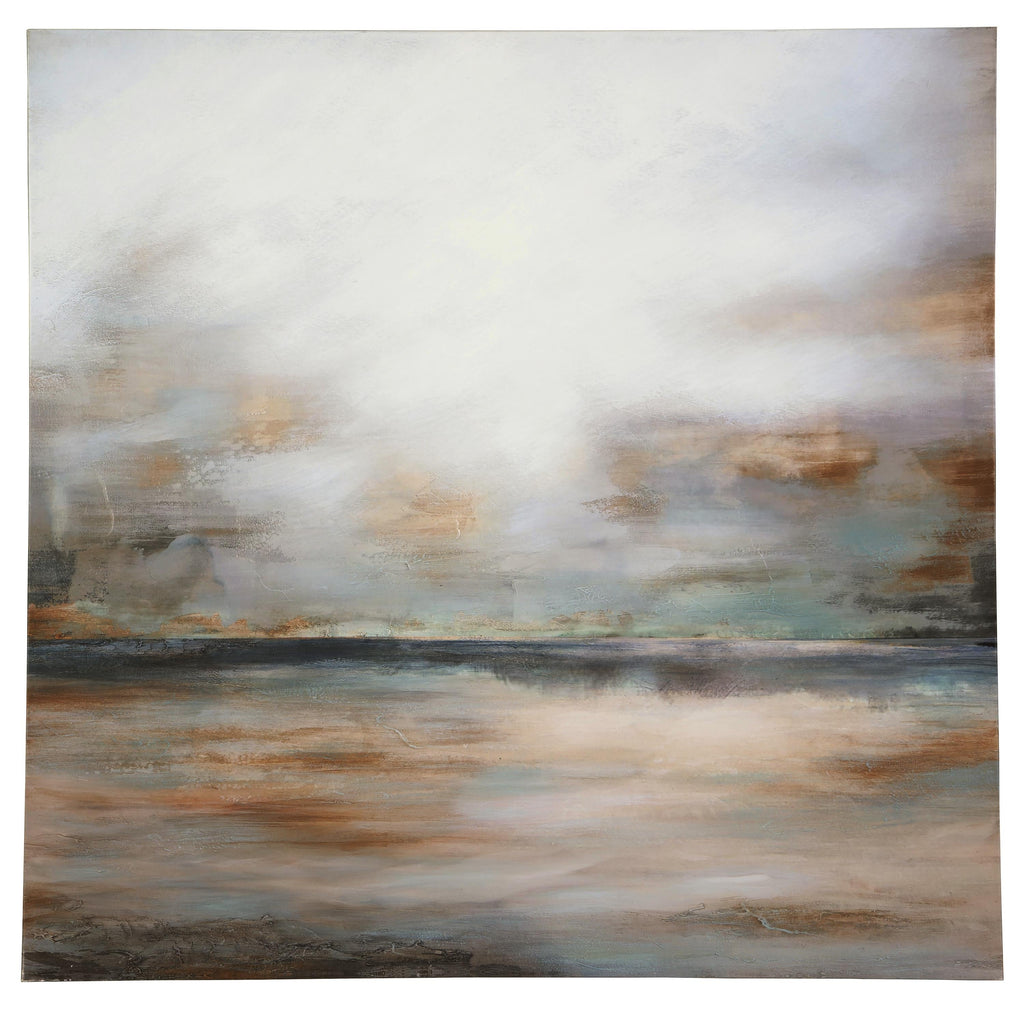 Keep your head in the clouds. This wall art is a dreamy addition to your modern decor. It’s a simply stunning abstract take on landscape paintings, gracing your space with its bright and airy design.