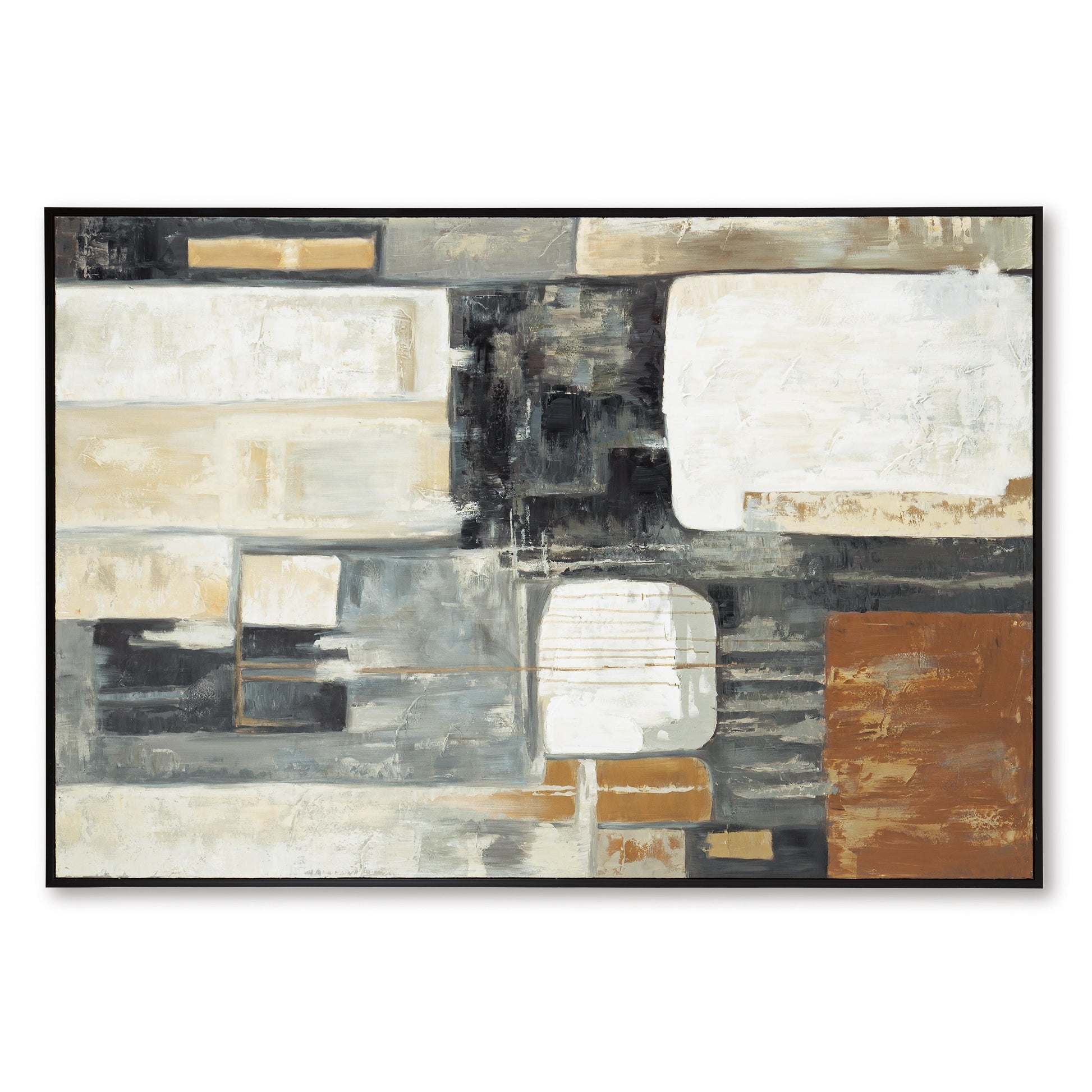 Complement your contemporary interior with this wall art. Bright and dark neutrals are layered on the canvas to form an eye-catching abstract design. The versatile color palette gives it the liberty to join your gallery wall, or the confidence to hang solo over the mantel.