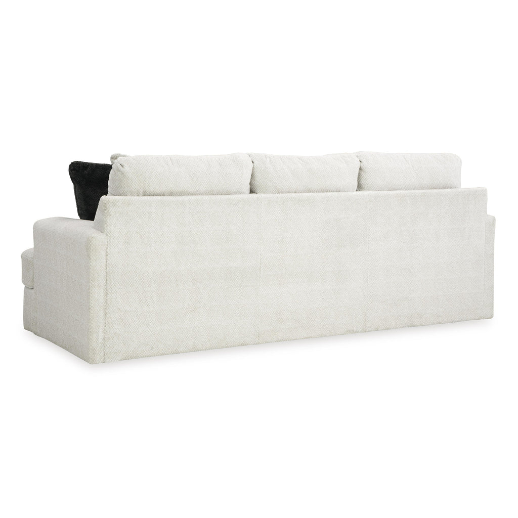 Craving casual refinement? This sofa has you covered. Its decidedly contemporary frame cradles sizable cushions in an ultra-soft neutral hue, lightening the mood in your living room with simple style and everyday comfort. Solid and geometric accent pillows perfect the chic-meets-cozy vibe.