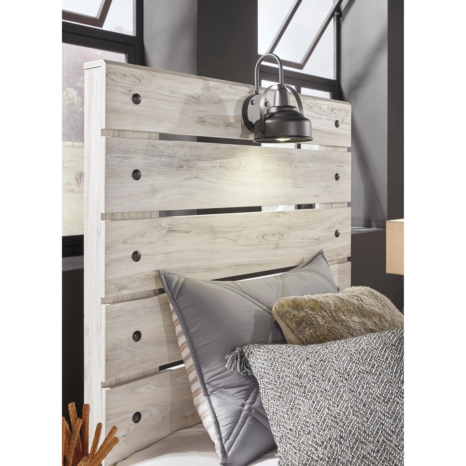 What a delightful take on rustic industrial style. Whether modern loft or modern farmhouse, this twin panel storage bed makes itself at home. The wispy whitewash palette enhances without covering the grain for that weathered look you crave. Love to read in bed? You’re sure to find the retro-chic light sconce and USB plug-ins on the open-slat style headboard such a bright idea. Elongated drawer pulls on the under bed storage drawers elevate the aesthetic.