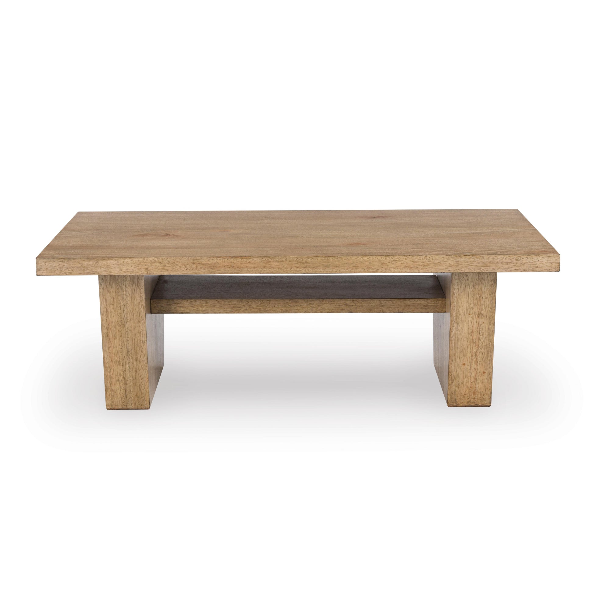 Add exceptional casual appeal to your entertaining and gathering space with this coffee table. A light wood-tone finish enhances its natural beauty, while thick, chunky geometry highlights the casually cool design. This table's relaxed feeling is right at home adorned with candles, vases or decorative books. Or coffee.