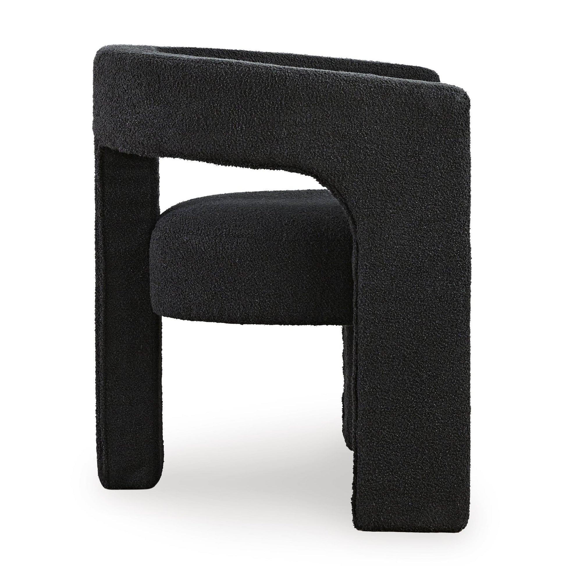 With its sculptural silhouette and barrel-back design, this accent chair exudes runway-inspired style. Peek-a-boo styling and decadent boucle upholstery combine both fashion and comfort seamlessly. Who says cutouts are just for your wardrobe?