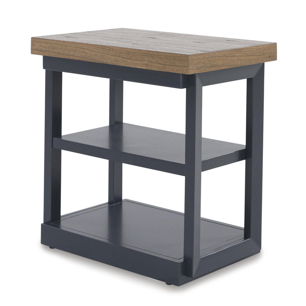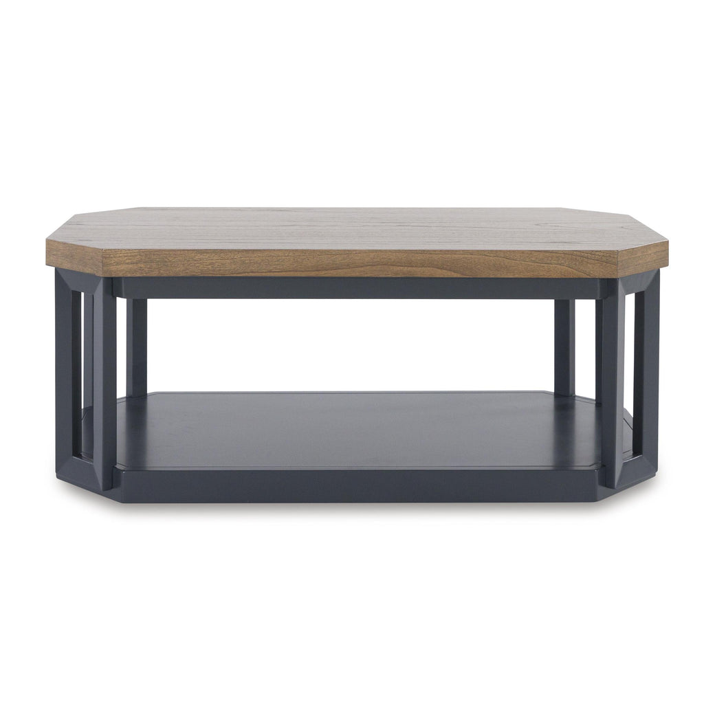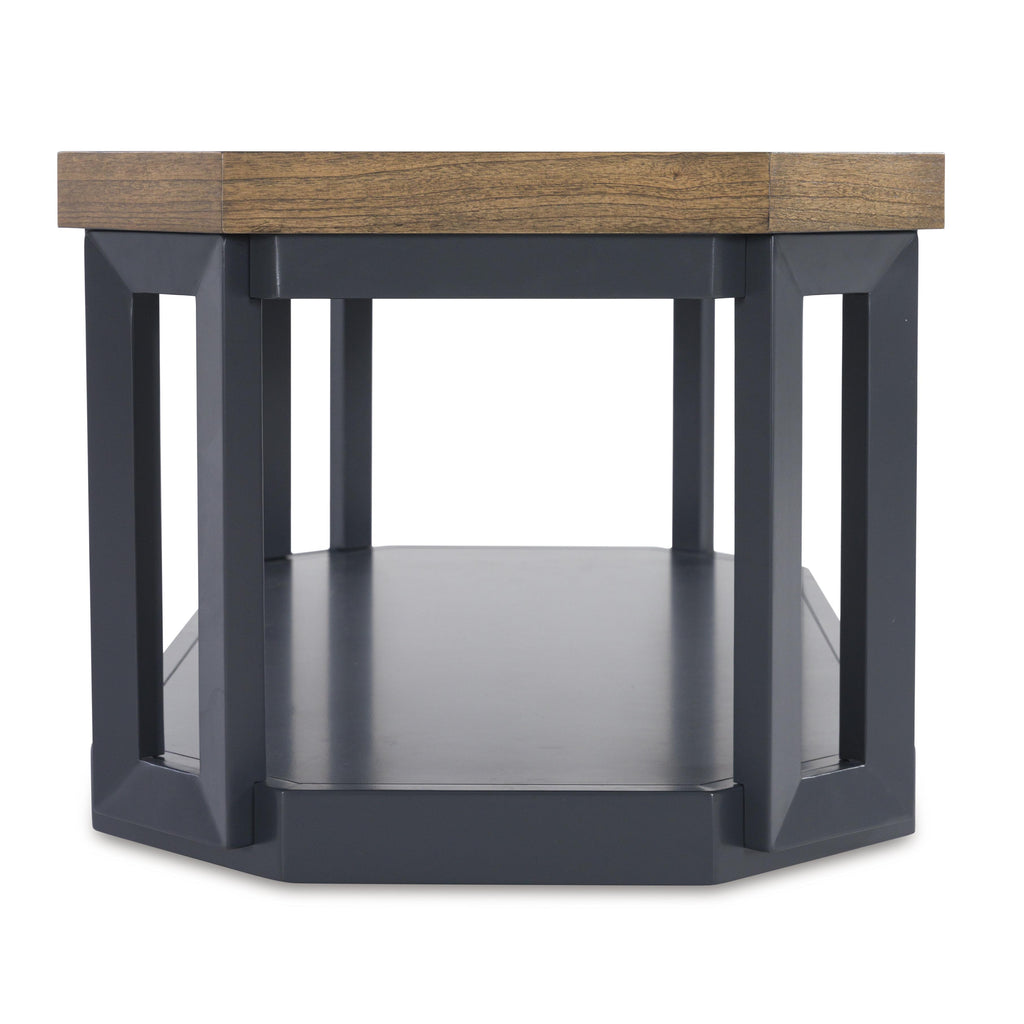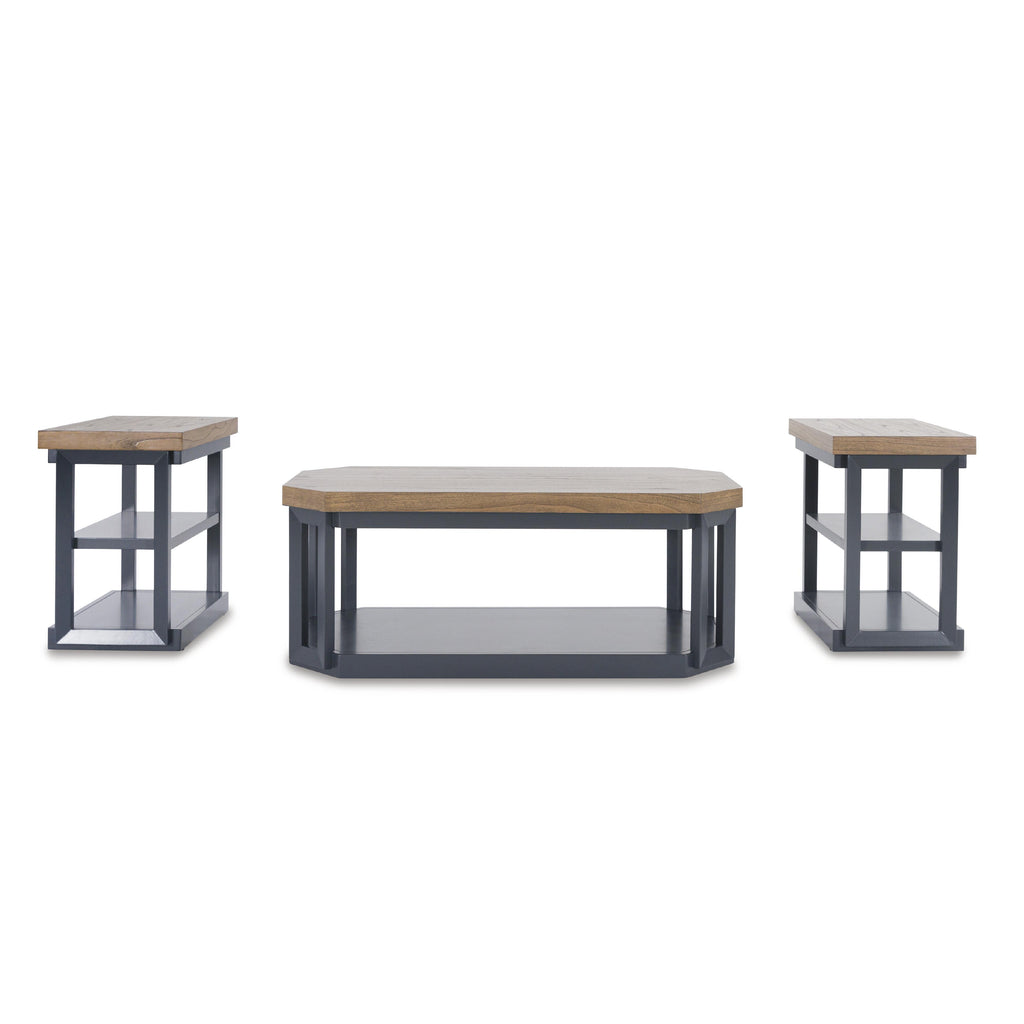 This accent table set combines casual contemporary design with modern appeal. With thick-bodied wood-tone tabletops and on-trend slate blue frames and shelves, these tables are a smart choice on so many levels. And casters on the coffee table's legs make it easily mobile for quick room transformations. This three-in-one pack is more than just nice furniture anchoring your sofa.