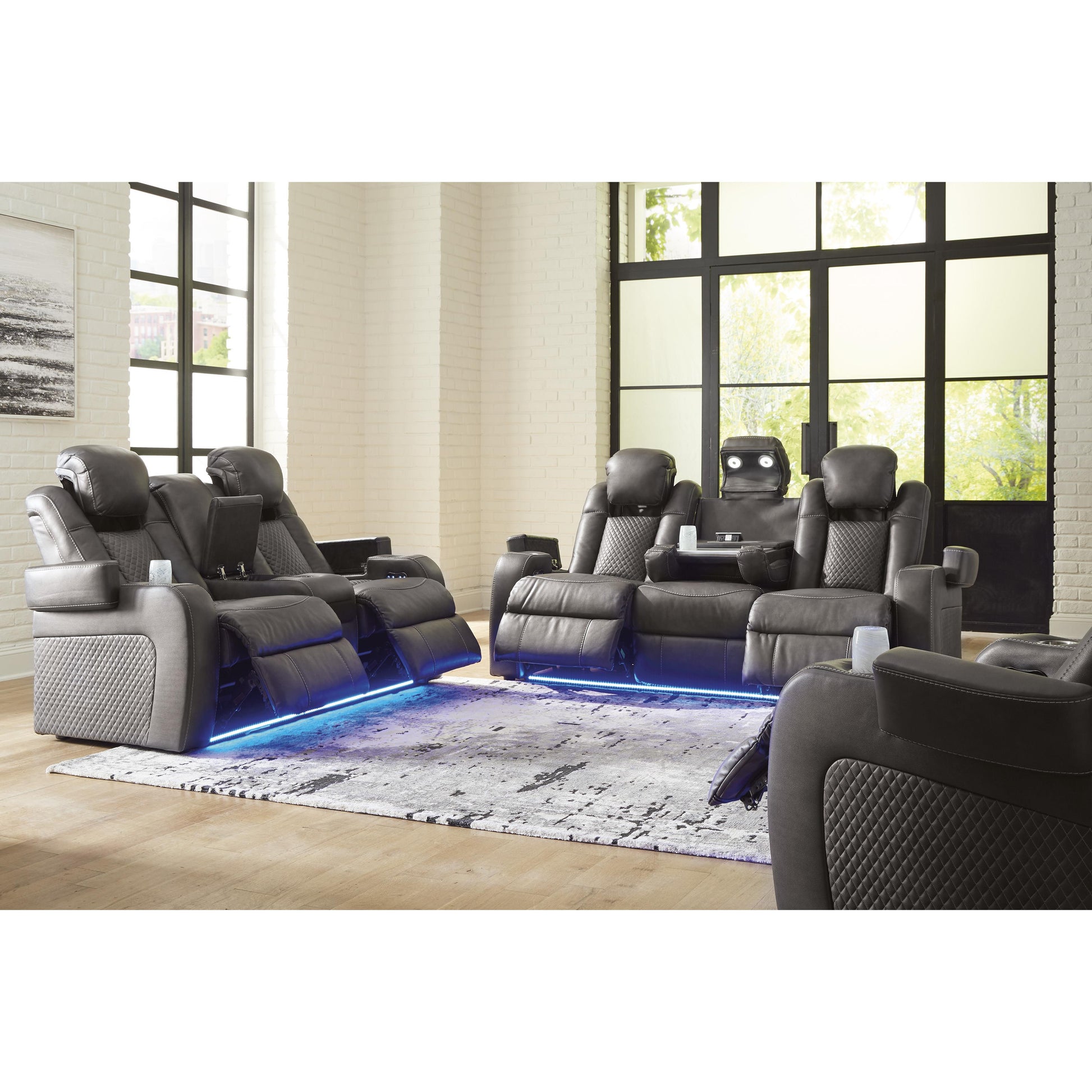Signature Design by Ashley Fyne-Dyme 3660218 Power Reclining Loveseat with Console and Adjustable Headrest