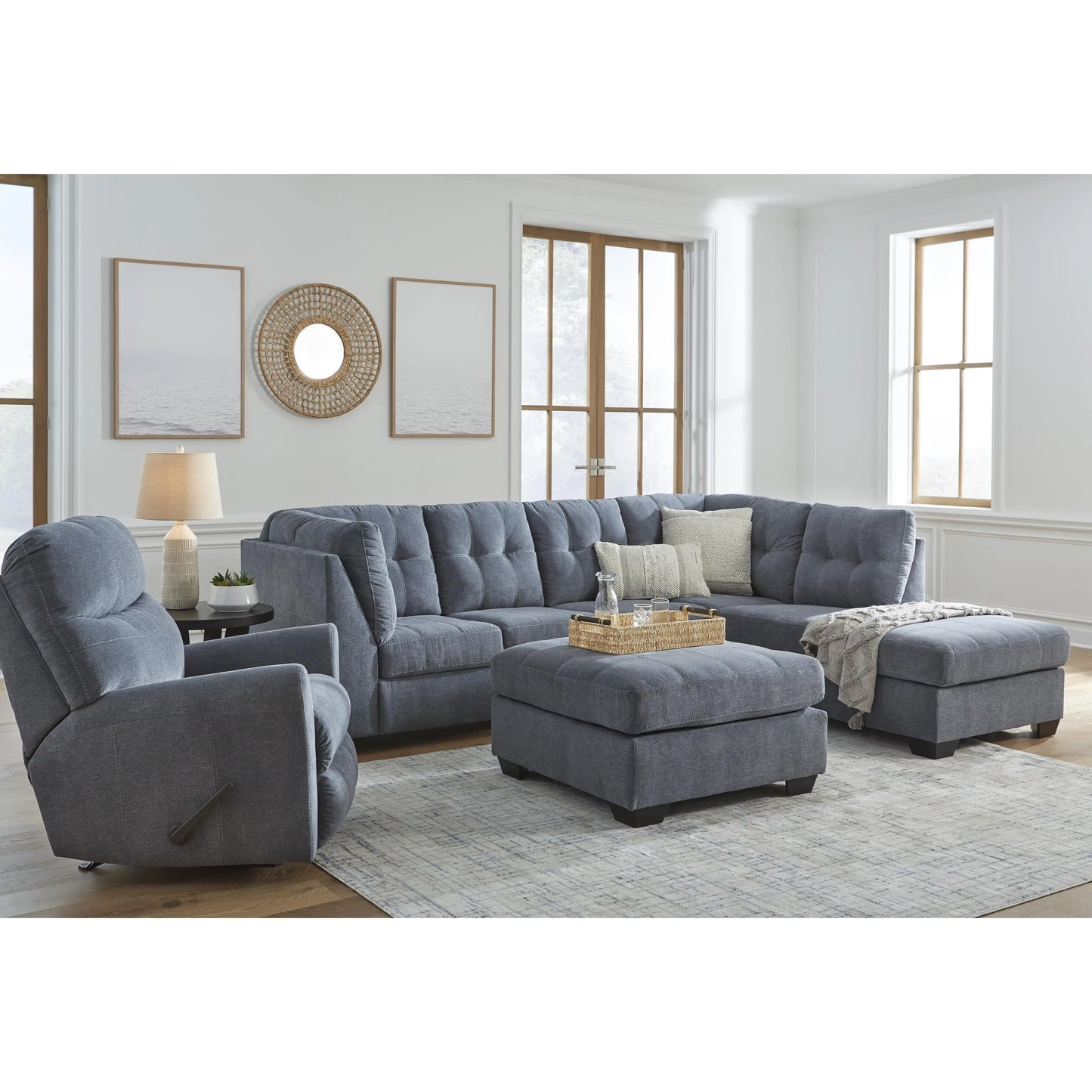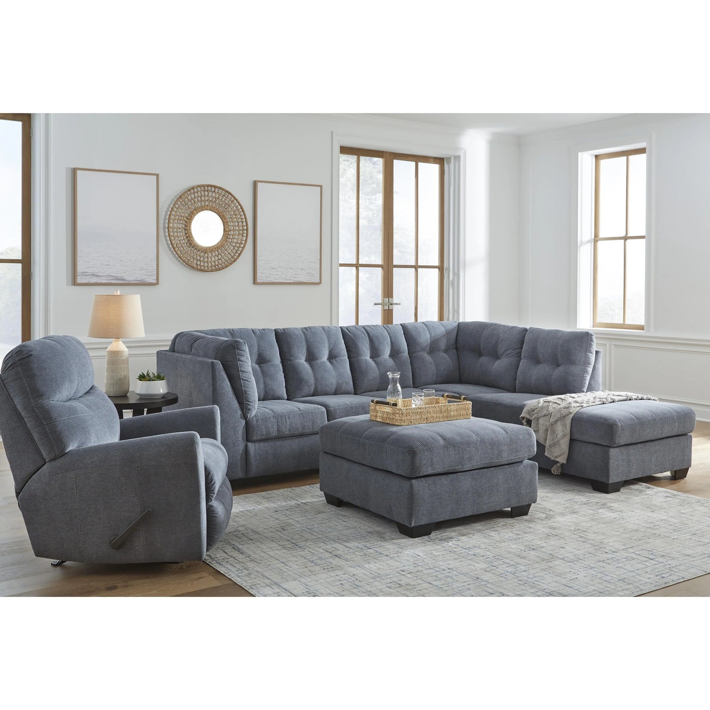 • Includes 2 pieces: left-arm facing sofa and right-arm facing corner chaise