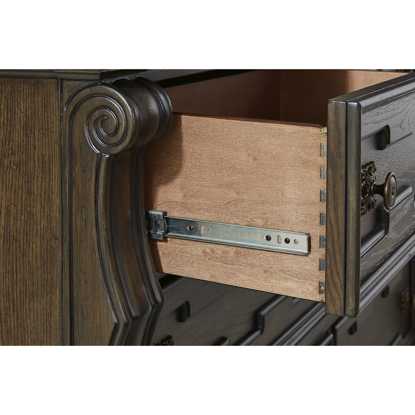 From its ornamental appliques to its large scale, this dresser makes a bold statement. Spacious drawers store your clothes, jewelry and more in stunning style. The look is timeless. The feel? Right at home.