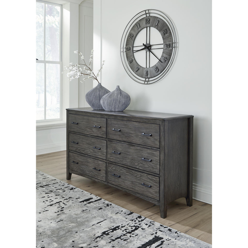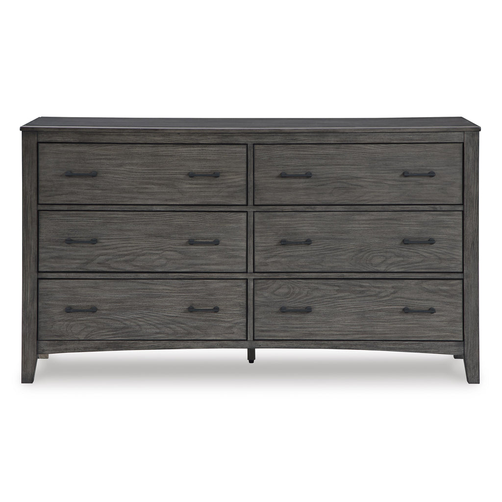 Cool and clean, yet warm and inviting. This dresser has so many standout qualities, making it an inspired choice for your dream destination. A prime example of “casual contemporary” style at its very best, the designer piece is dressed to impress with an embossed wood grain texture. Spacious drawers with fully finished interiors offer ample storage for your wardrobe and spare bed linens. And the medium gray-brown finish with a blackened wood grain is wonderfully easy on the eyes.