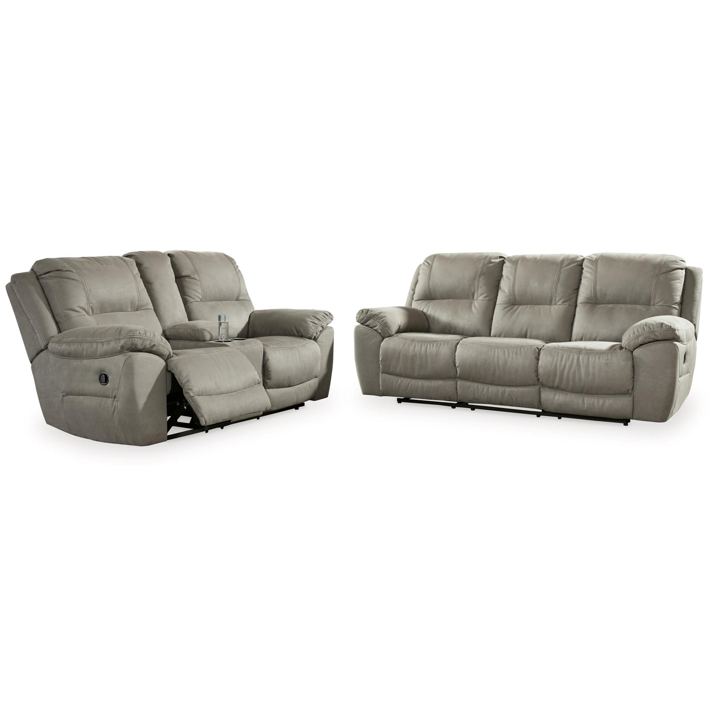 Kick back, relax and enjoy some sports on TV with this seating package. You will love its double stuffed pillow top arms and soft-as-suede faux leather upholstery. The set's family-friendly dark gray color and creative stitching add panache. This set includes a sofa and a loveseat.