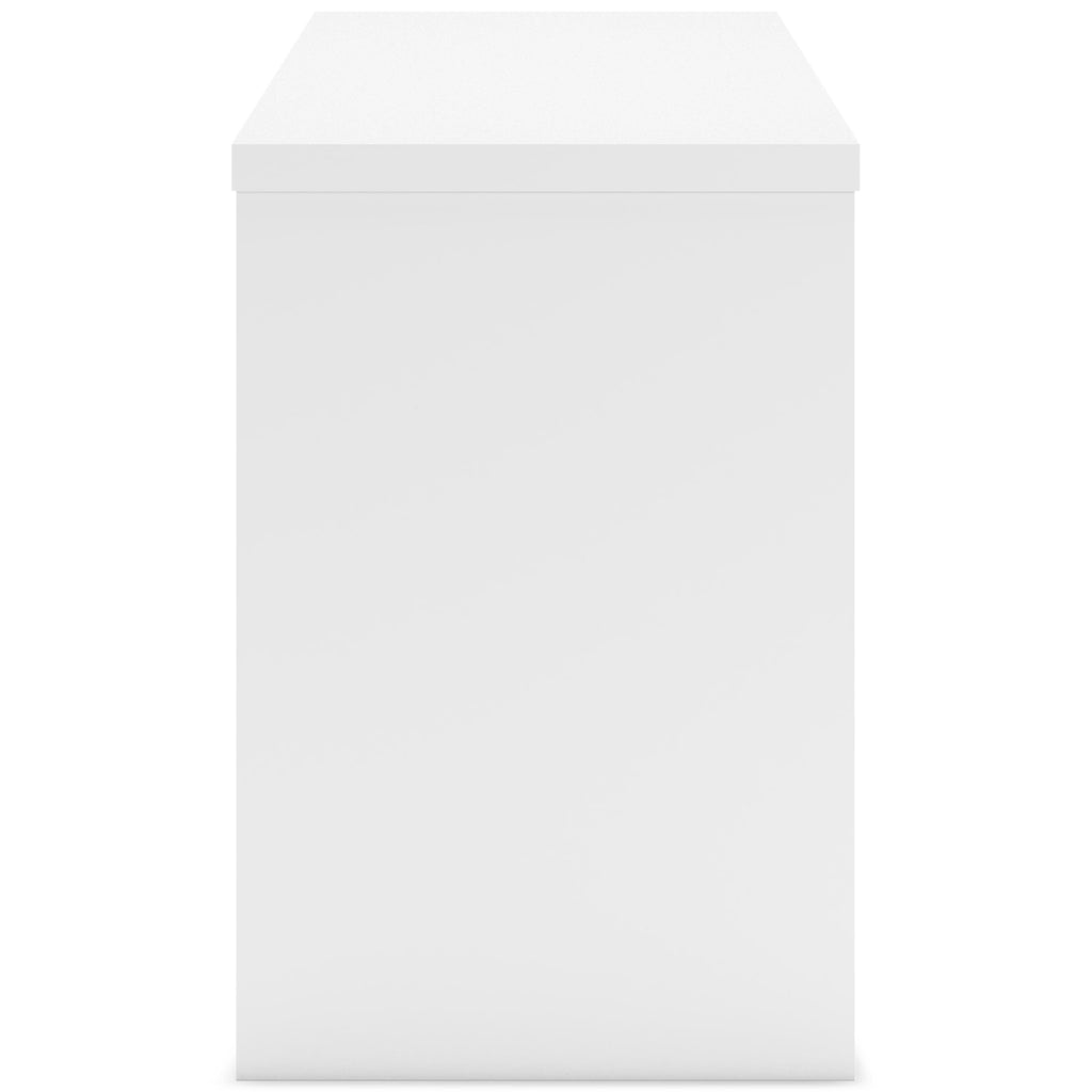 Create the modern workspace of your dreams. This sturdy home office desk offers a minimal design with maximum style, combining ultra-clean lines and an easy-elegant solid white finish with a hardware-less aesthetic. A spacious drawer with ball-bearing glides organizes the business at hand.