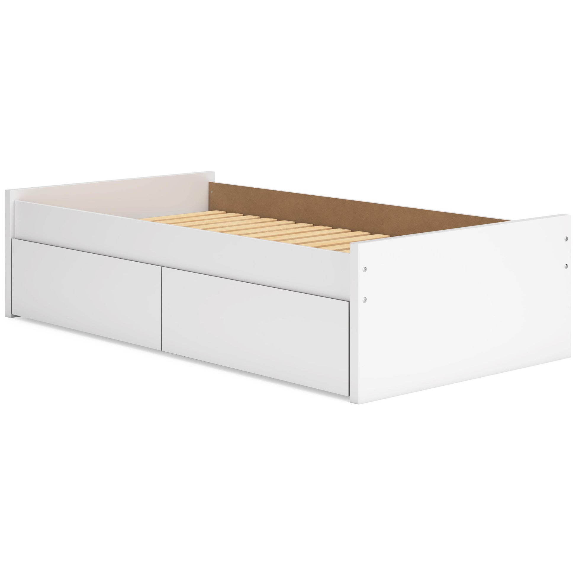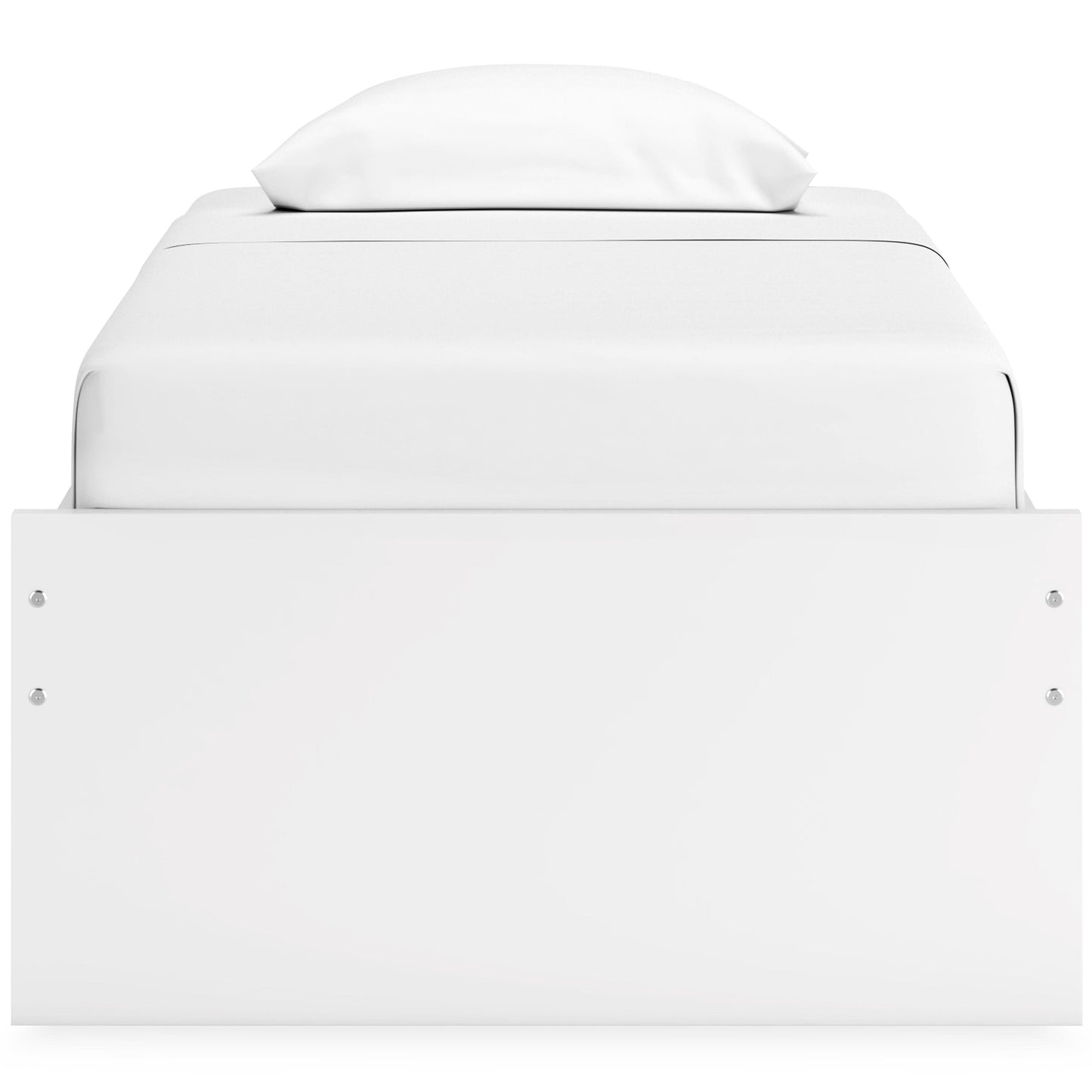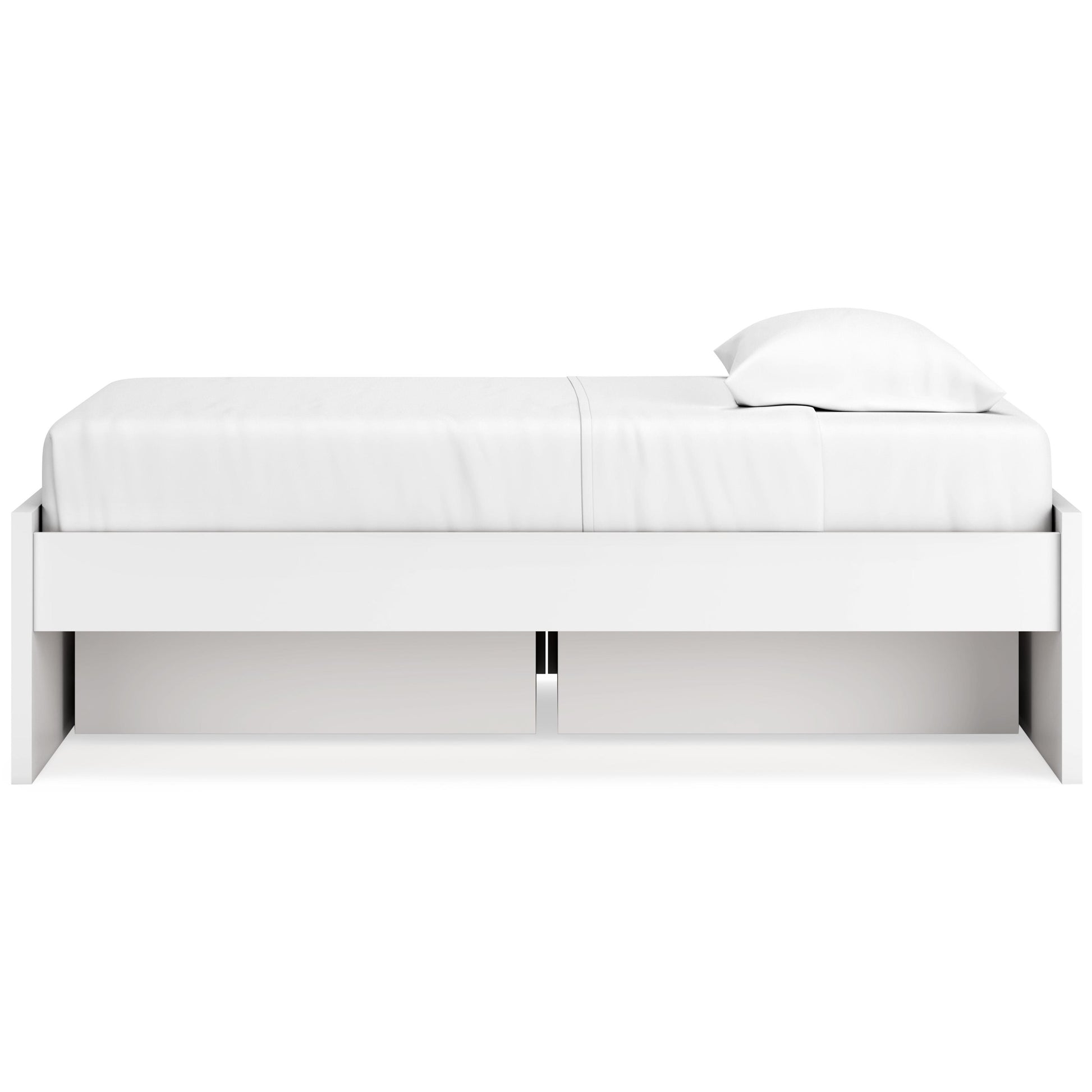 Create the modern bedroom of your dreams. This twin platform bed offers a minimal design with maximum style, combining ultra-clean lines and an easy-elegant solid white finish with a hardware-less aesthetic. Spacious storage drawers with ball-bearing glides make putting things away a snap. And this bed doesn't need a box spring or foundation, so you can splurge on a mattress that's sure to carry you away to a soothing place.
