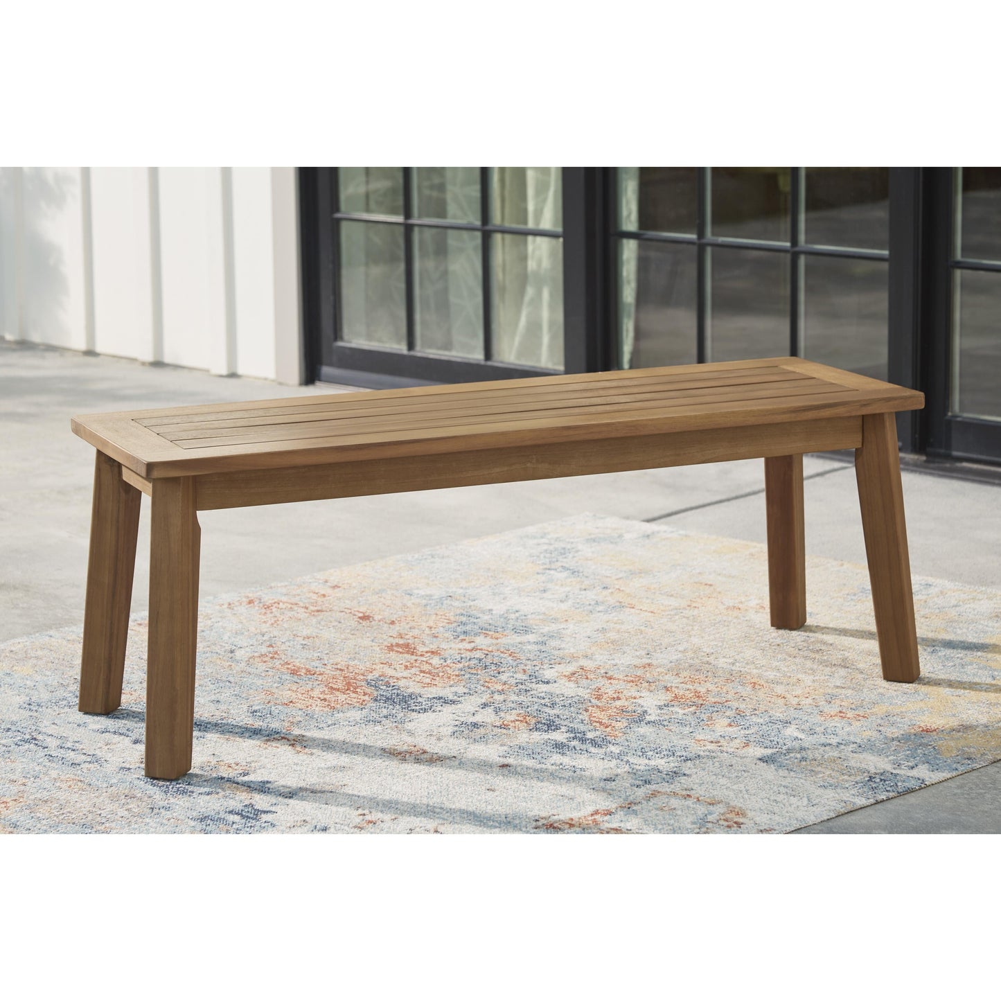 There's no need to be stuck inside when the weather is perfect. Enjoy an alfresco gathering with this outdoor bench. Made of solid acacia wood, this bench is built to keep its looks with a slatted style that sheds rainwater. You'll love soaking in the scenery from here.