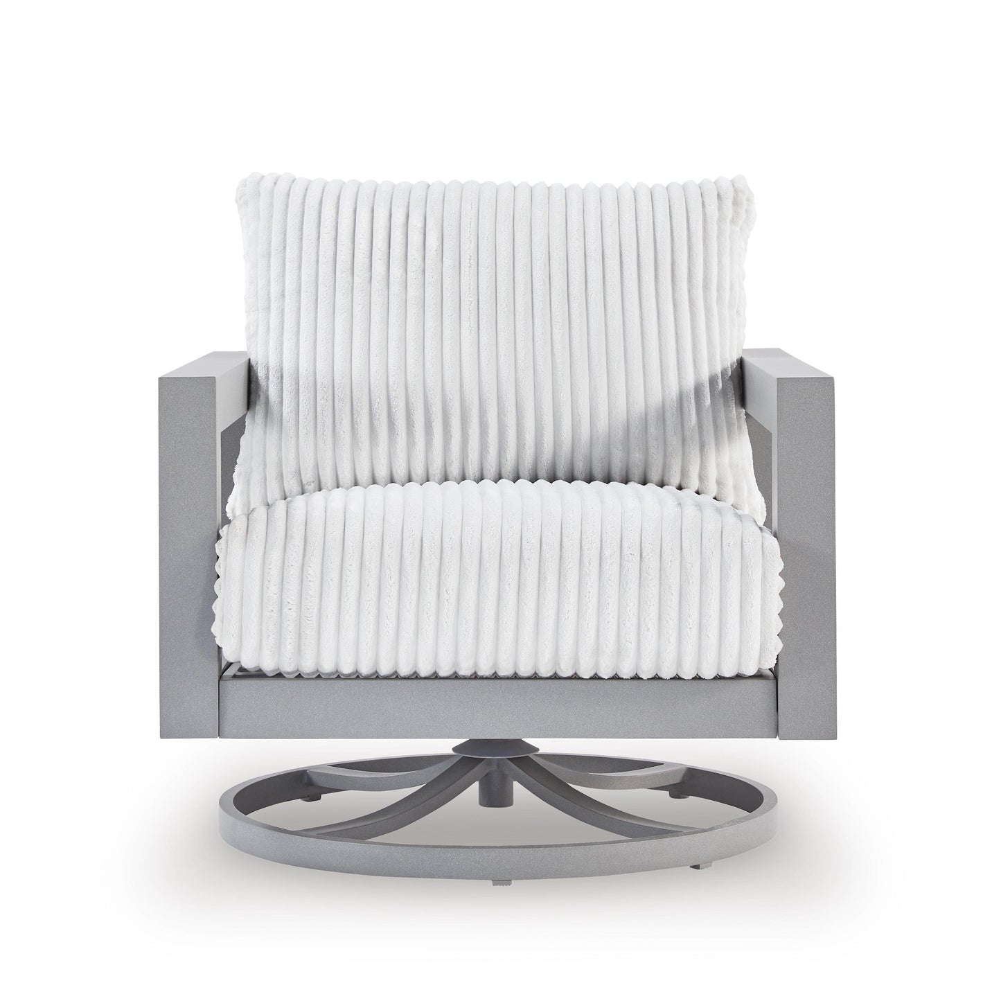 Indulge in luxe outside living without sacrificing longevity. This outdoor swivel chair combines on-trend texture with a sleek aluminum frame. Soak up the sun poolside or on the porch—a 360-degree swivel allows you to effortlessly turn to chat with guests or look after the kids. And with cleanable, UV-resistant Nuvella® fabric in a showstopping corded look, style and durability go hand in hand.