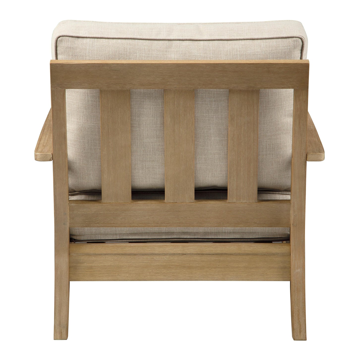 An effortlessly elegant choice in outdoor furniture, this outdoor lounge chair marries sturdiness and style in such a delightful way. For that much more weather protection, the chair’s eucalyptus wood frame with tapered touches and slat styling is treated to a 5-step finishing process. Sumptuously soft yet remarkably durable, the included cushions are wrapped in a high-performing, low-maintenance Nuvella® fabric you’re sure to love.