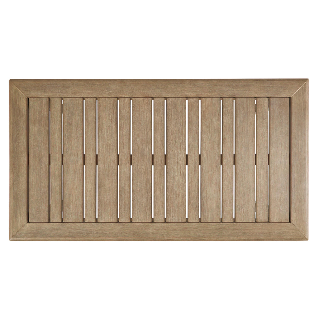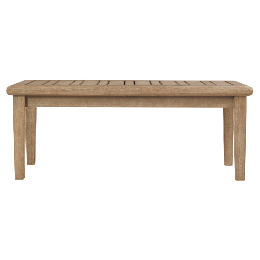 Discover a high-style alternative to traditional outdoor furniture. This outdoor coffee table marries sturdiness and style in such a delightful way. Better yet, it has the edge when it comes to affordability. For that much more weather protection, the table's eucalyptus wood frame with slat styling is treated to a 5-step finishing process.