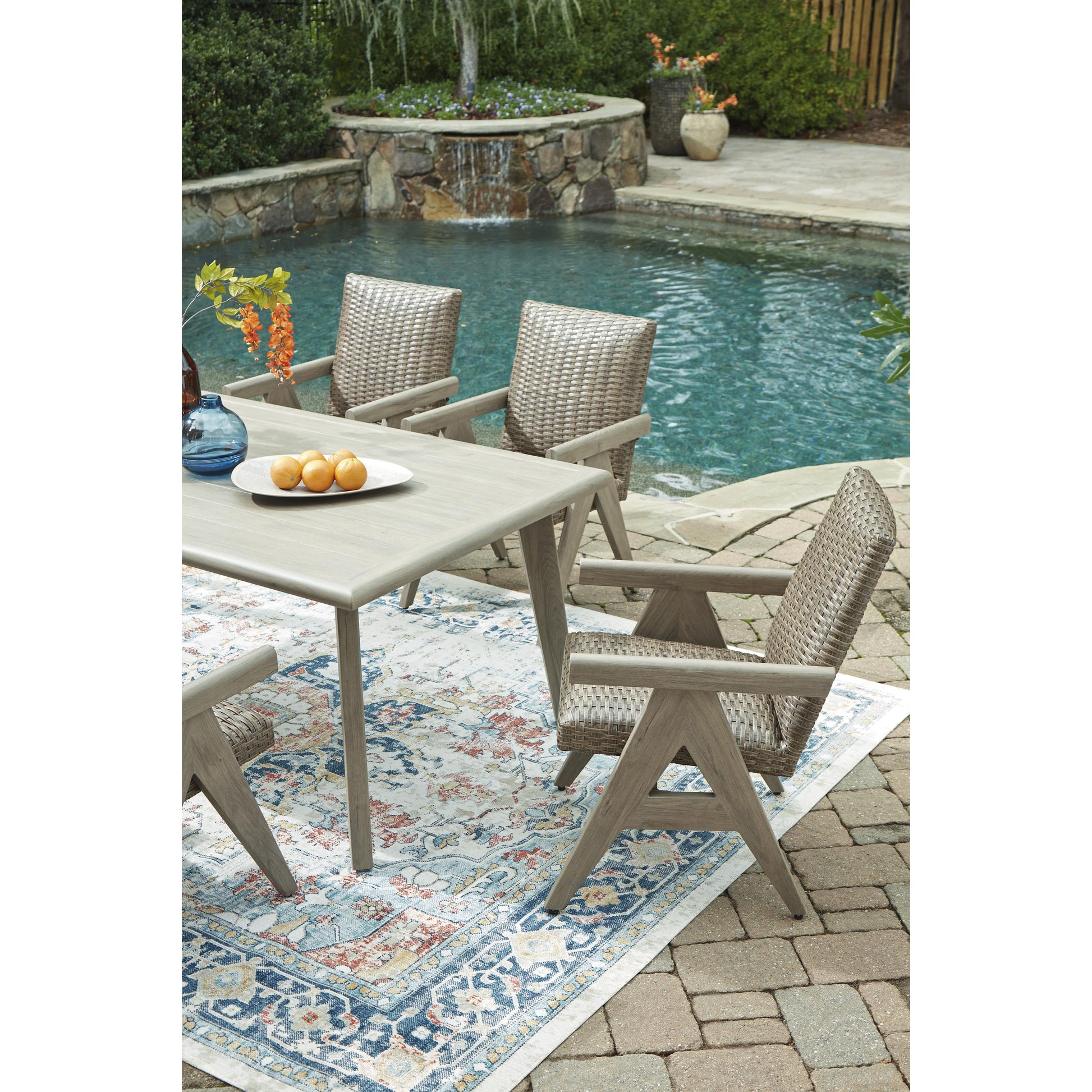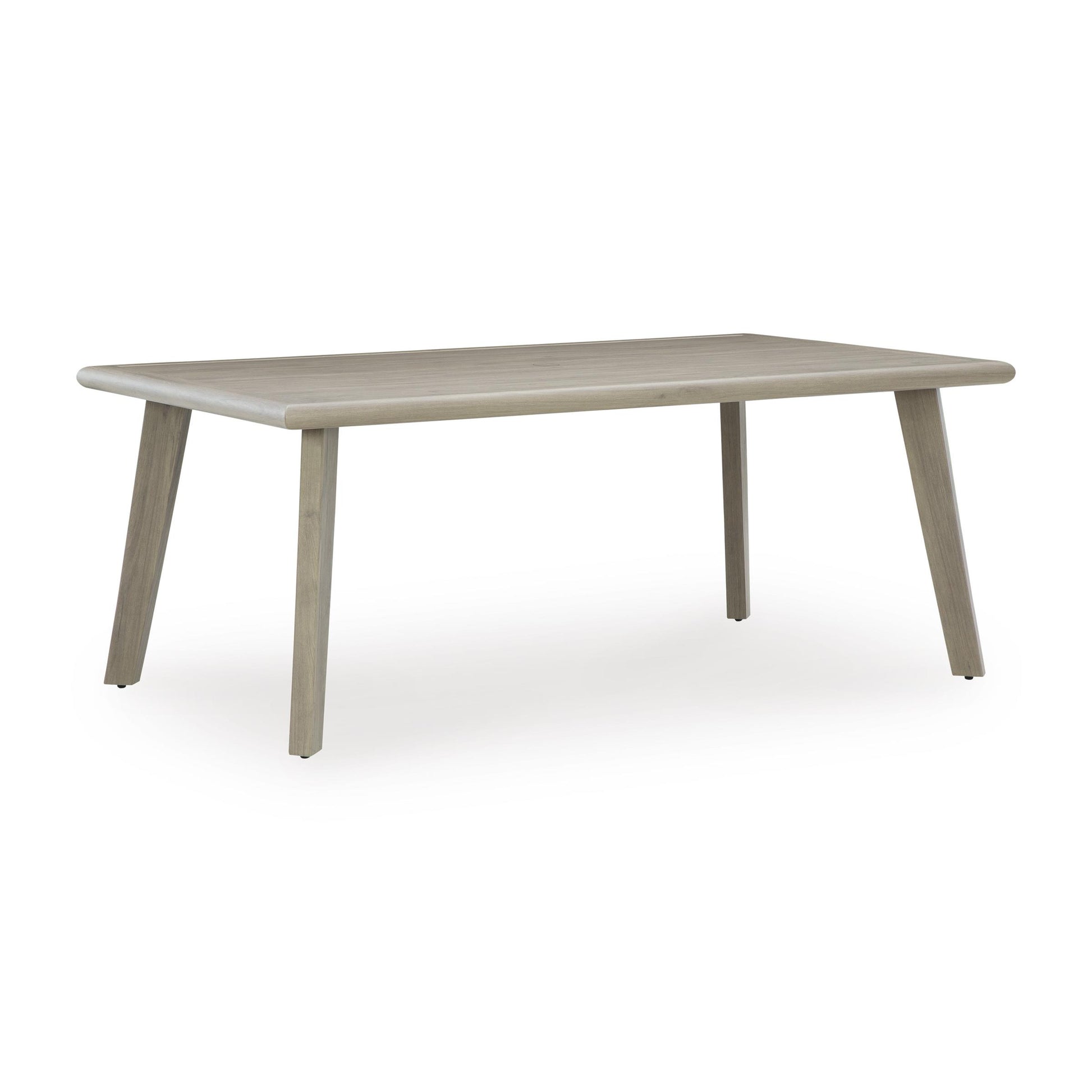 The naturally beautiful look of wood. The potential for endless days in the shade. And did we mention durability? This outdoor dining table is crafted with elevated style and everyday function in mind. With sturdy aluminum construction, it withstands the weather while making a chic statement on your deck or patio. A built-in umbrella hole keeps you covered while entertaining friends and family alfresco.