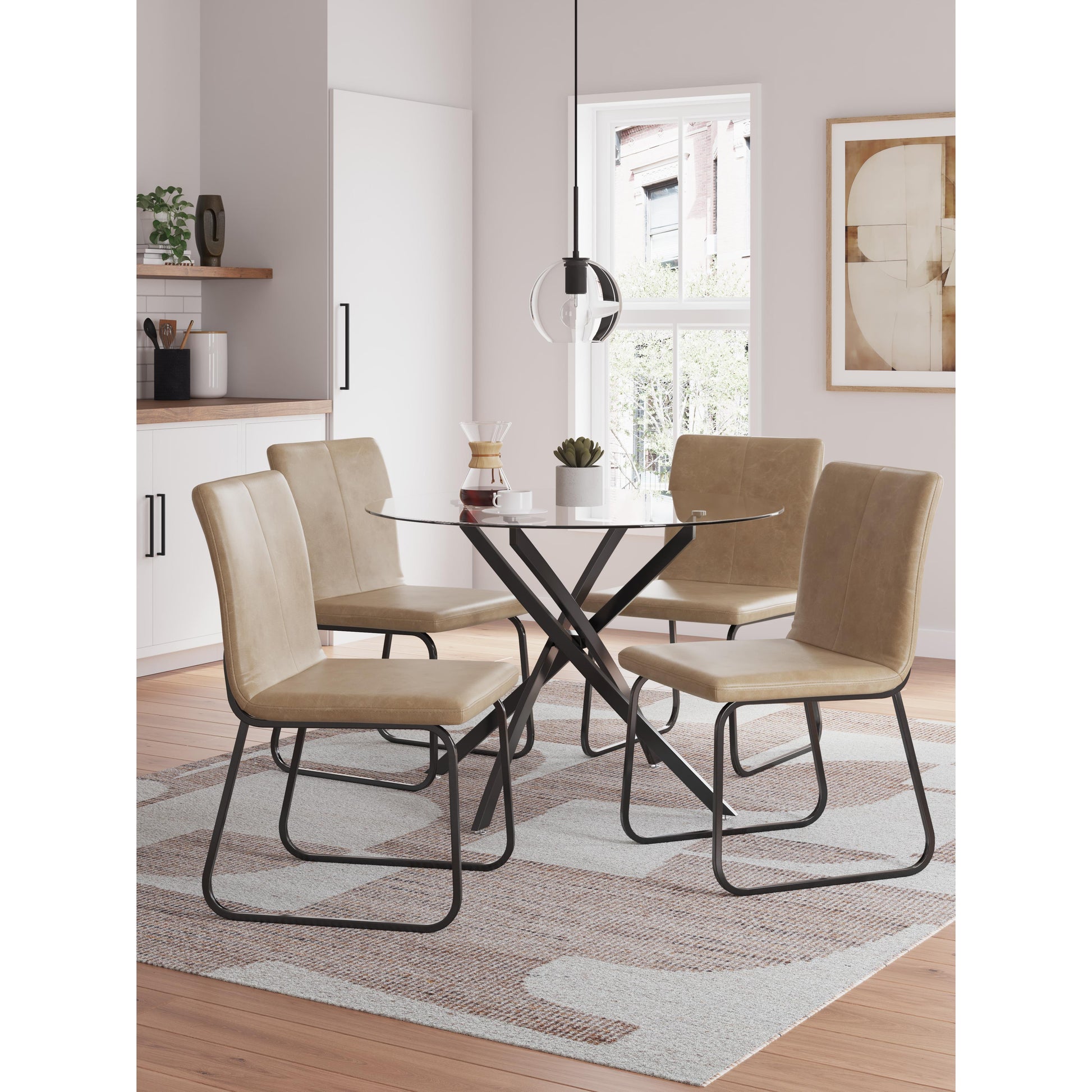 You’ll love the way this upholstered chair masterfully complements the mod vibe of your dining room. A metal frame in a sleek gunmetal color adds eye-catching contemporary flair to the casual design. Made with everyday function in mind, its cushioned seat is covered in faux leather upholstery so you can dine in comfort.