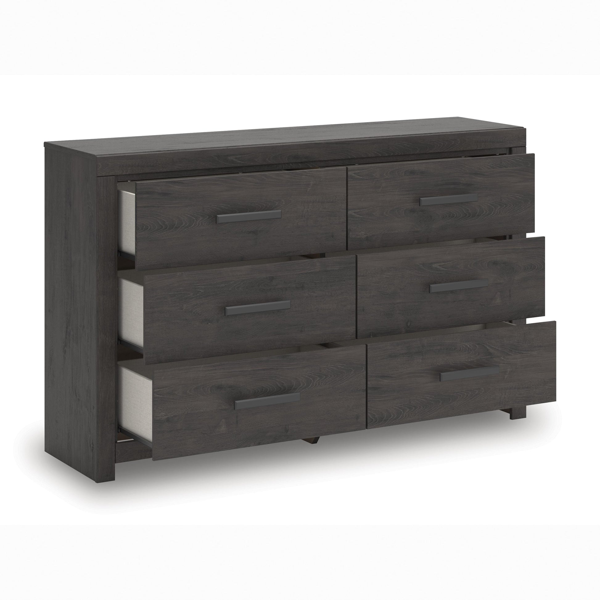 Designed with everyday style in mind, this dresser is a simply chic approach to modern living. A dark charcoal finish blends black and brown undertones, creating a versatile look that effortlessly pairs with your existing pieces. And for must-have function, six smooth-gliding drawers store clothes and linens in charming fashion.