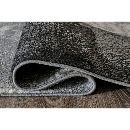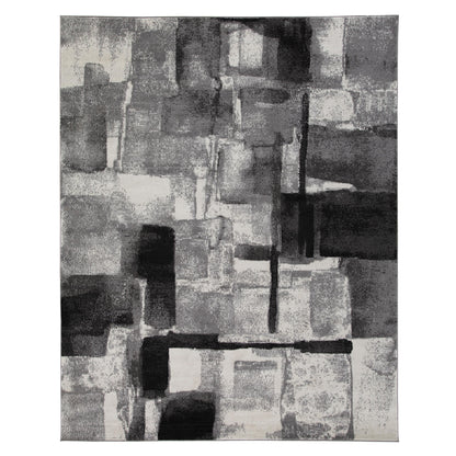 This area rug features a striking abstract design in black, gray and cream. Its ethereal look dresses up a room with subtle color, visual texture and a highly contemporary point of view.