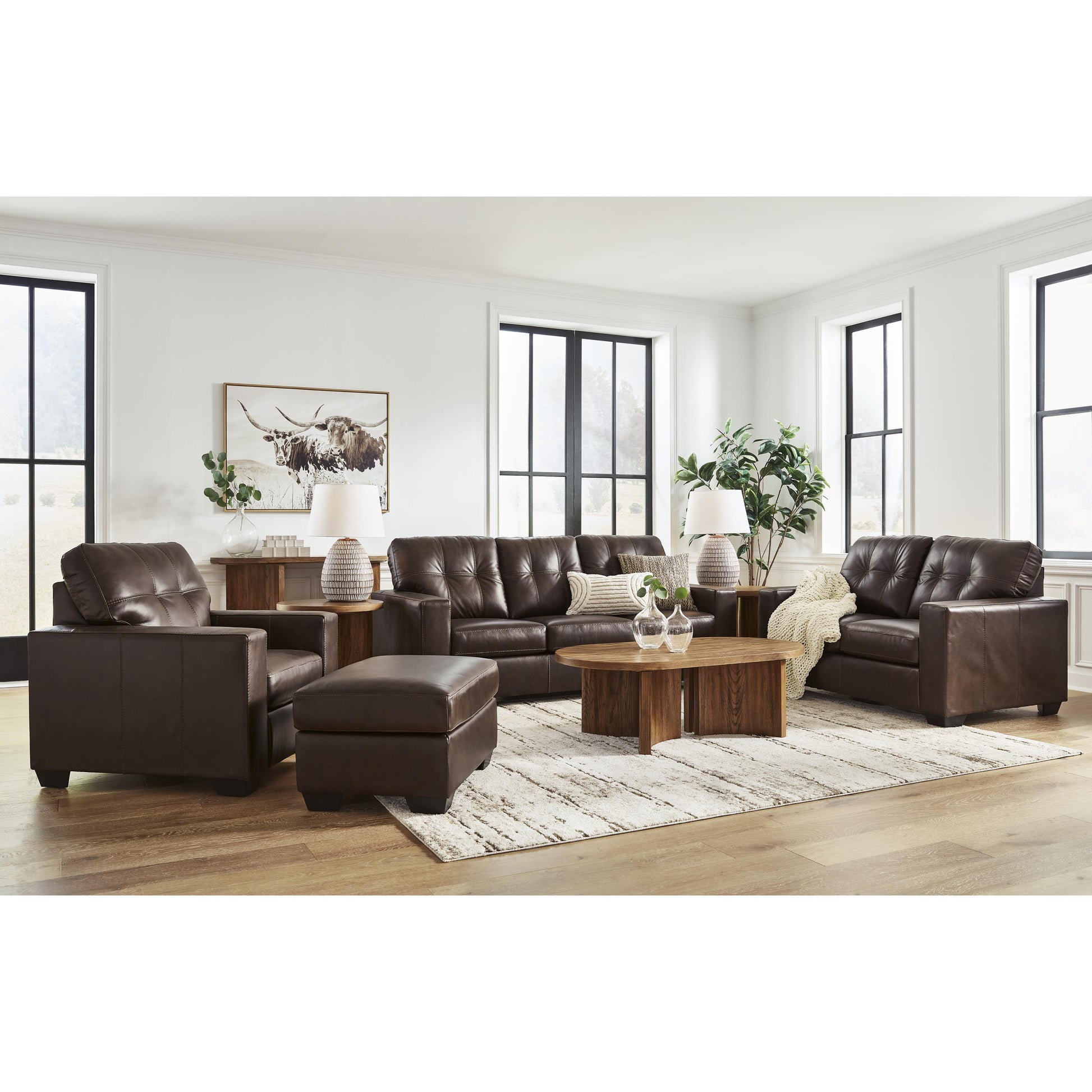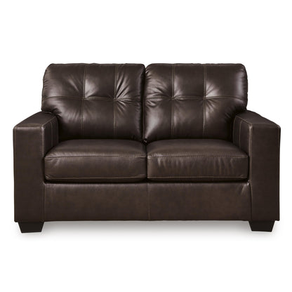 Whether your inspiration is contemporary or classic, this loveseat's good looks and affordable luxury are hard to deny. Its clean-lined silhouette and skillfully matched leather and faux leather upholstery offer a transitional sensibility that's right at home in your home. And the ample cushions with tufted details invite you to relax in comfort.