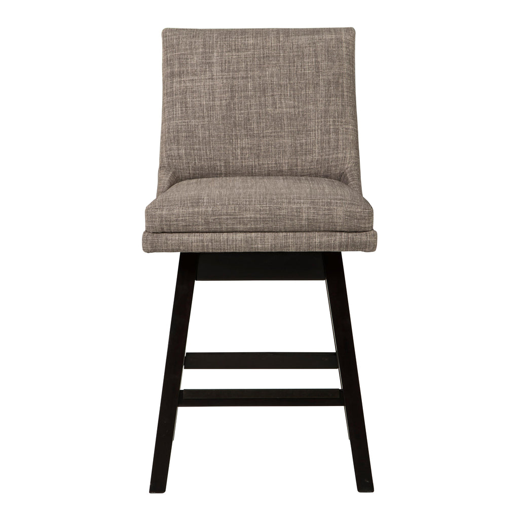This striking barstool invites you to take contemporary modern style for a spin. Comfortably cushioned seat, self-returning swivel and contoured back make it beautifully in tune with your needs. Luxurious linen-weave upholstery is a sensational touch.