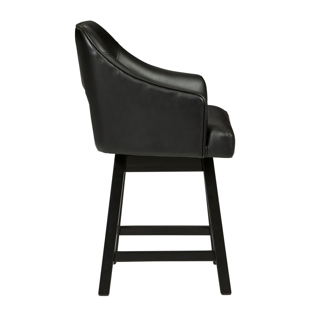 This striking barstool invites you to take contemporary modern style for a spin. Comfortably cushioned seat, self-returning swivel and contoured back make it beautifully in tune with your needs. Luxurious faux leather upholstery is a sensational touch.