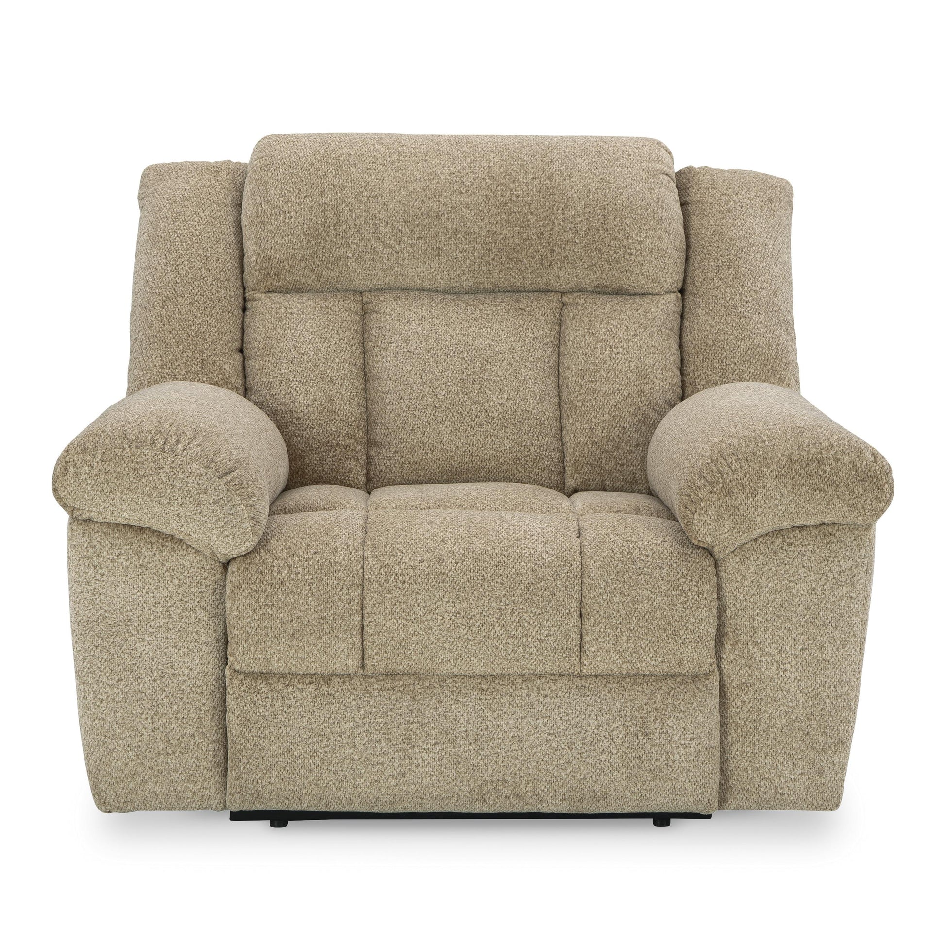 Big, bold comfort. Game time and movie nights meet their match with this power recliner. Made for ultimate indulgence, an extra-deep seat encourages you to sit back and bliss out. Customize the recliner and headrest to find your ideal viewing position with effortless one-touch controls. And with plush upholstery in a trendy hue, you won’t need to sacrifice style for cozy seating.