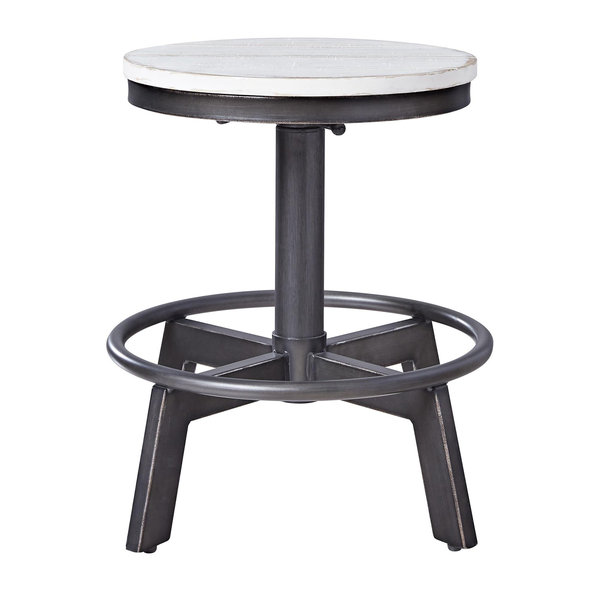 Make your home the hub for cool vibes with this stool. Its two-tone finish scheme of vintage white and aged gunmetal is full of urban industrial swagger. The stool's adjustable height is accommodating for you and your guests. Add it behind your sofa with a long counter table for a dapper eating or working space.