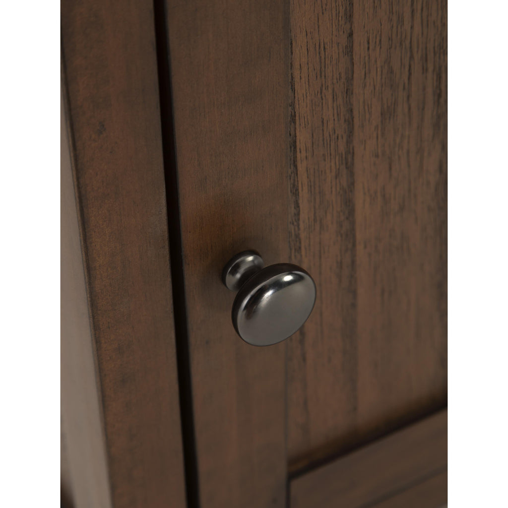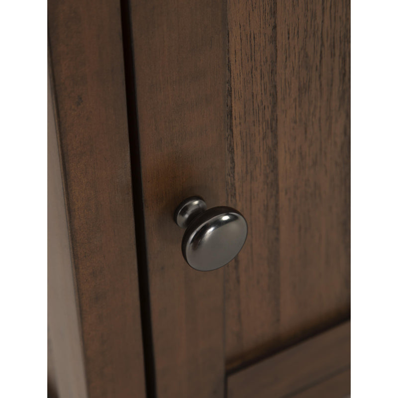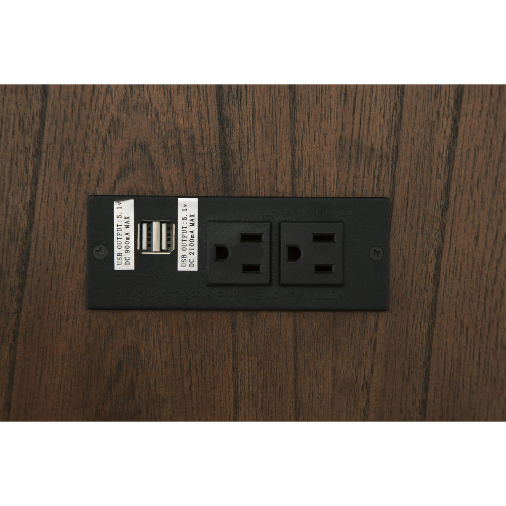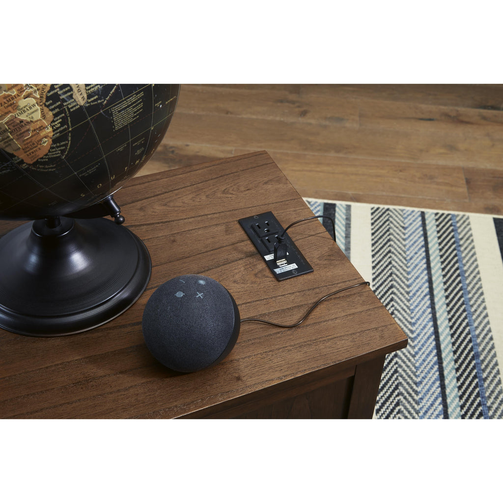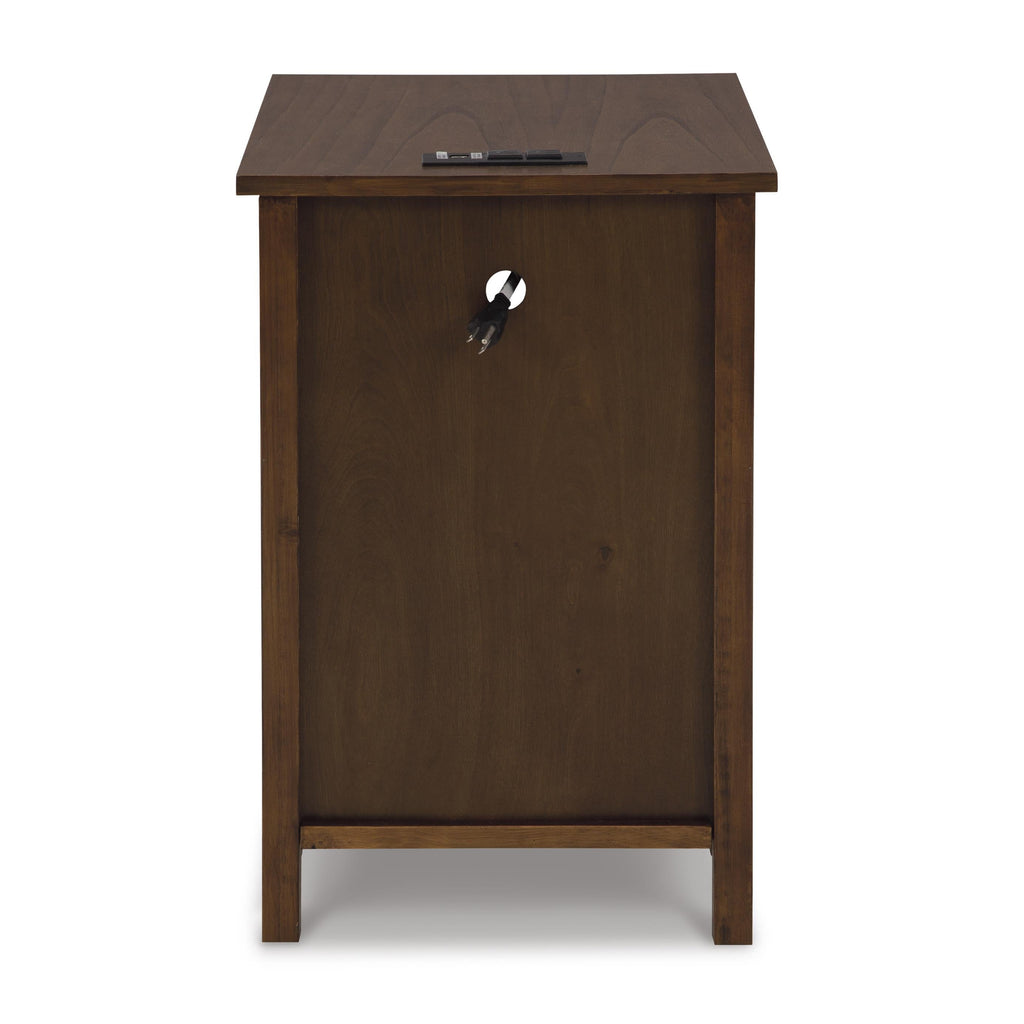 Add big character to a small space with this chairside end table. With its compact size and strong silhouette, it can go anywhere and blend easily into the decor. Less is so much more with the Shaker-inspired design and warm brown wood tone finish. Loaded with form and function, this end table displays accent pieces and stores essentials securely while keeping devices powered up.