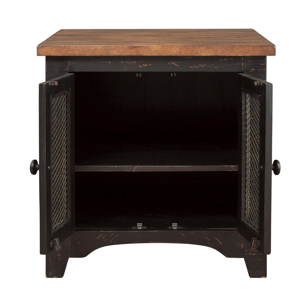 To those with an eye for the best in rustic farmhouse living, this two-tone end table doubles up on charm. Designer touches include plank-effect styling, distress marks and wire mesh door fronts for added character.