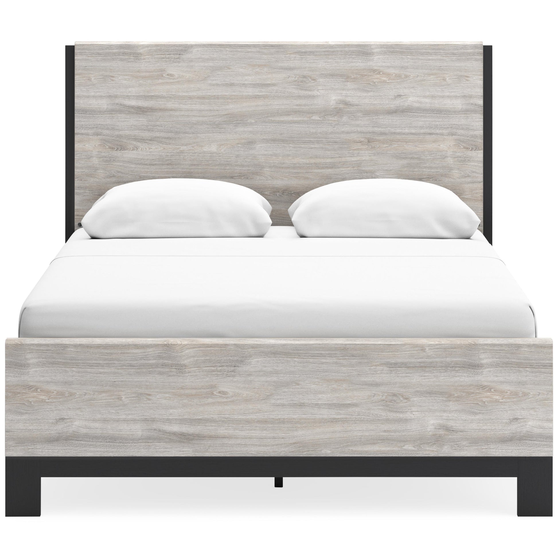 Craft a contemporary hideaway without breaking the bank. An elegant juxtaposition of refined neutral hues, this two-toned queen panel bed brings sleek style to your space. The sheer simplicity of its profile frames your mattress stunningly. With this chic piece, a bedroom brimming with luxury has never been more attainable.