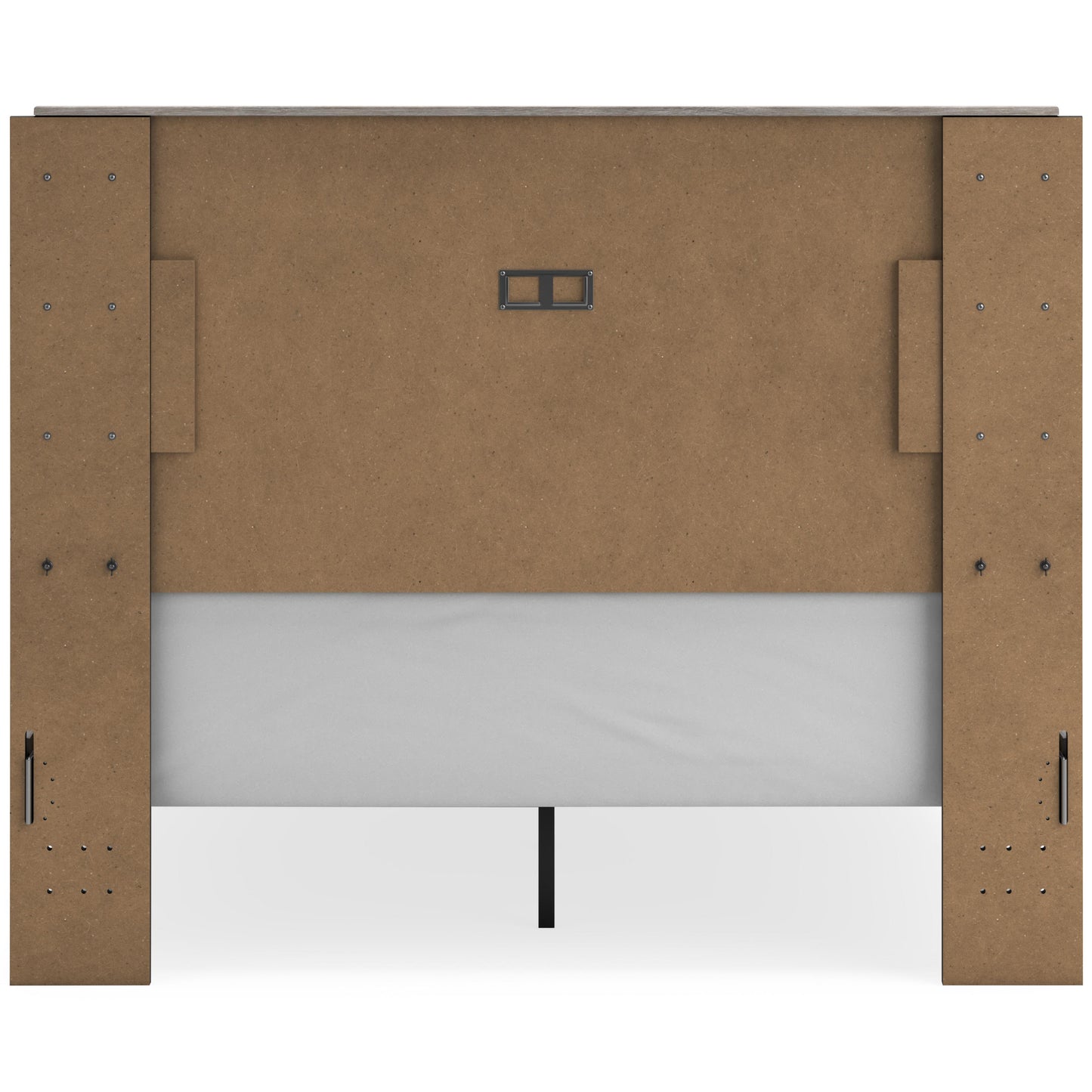 • Light gray finish over a replicated oak grain with authentic touch; footboard base has matte black finish with subtle replicated wood grain