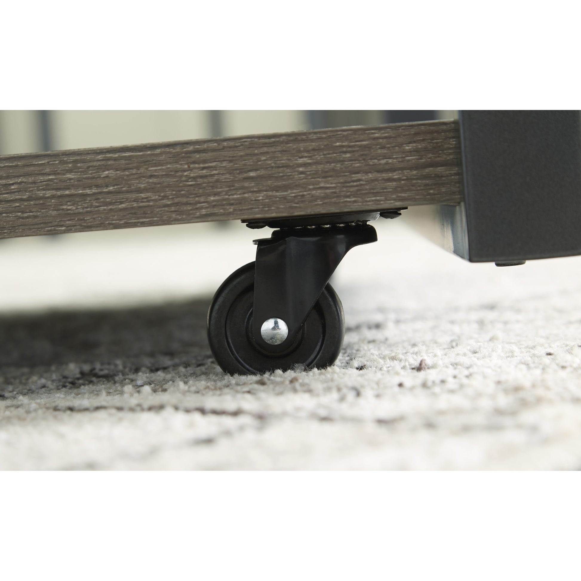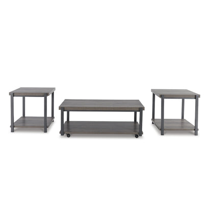 A cohesive, casual contemporary ensemble. This table set is equal parts sleek form and routine practicality. If you're hosting guests or need space to stretch out in a recliner, rolling casters on the coffee table clear up extra floor space in a snap. Each table is outfitted with a lower shelf for chic storage and displaying decor.